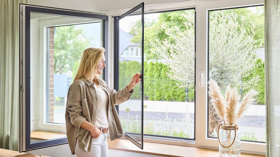 Leicht montiert begeistern maßgefertigte Rahmen zum Einhängen, aber auch Drehrahmen, Schiebeanlagen, TWO IN ONE Rollos mit zusätzlicher Verdunklung, Pendeltüren, motorisierte Elektro-Rollos mit integriertem Solarpanel, Lichtschachtabdeckungen sowie Insektenschutz-Plisseetüren in jeder Einbausituation durch ihre hervorragende Funktion, einfachste Bedienung und zeitloses Design.